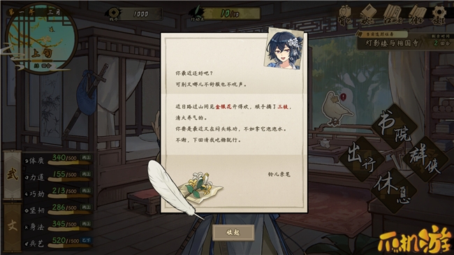 同时,游戏的养成也不只是单纯的耗费体力,让主角重复完成训练提升属性点。在游戏中玩家进入明镜书院后,甚至可以在学院里种药烹饪,可以说,游戏力求让每个玩家都能在游戏中感觉到“我即是主角,那个少年豪侠。”