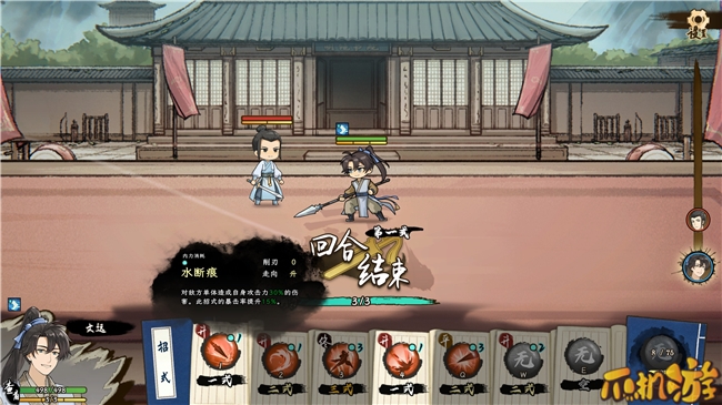 但和传统的指令战斗不同,游戏中玩家每次出招所能使用的招式,并非随心所欲,玩家角色必须通过一套独特的【招式阶段】与【招式走向】系统出招。